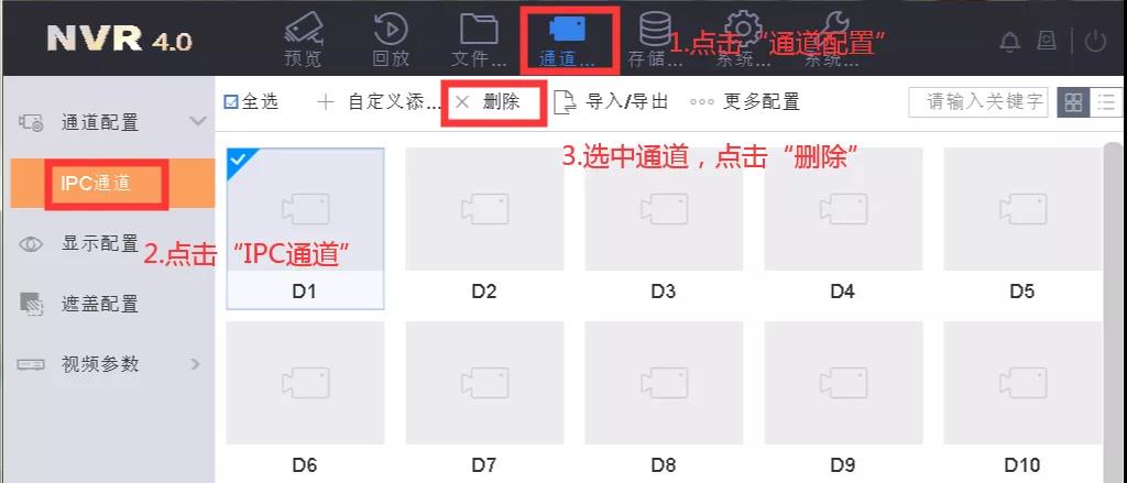 通道配置—IPC通道,選擇設備,點擊刪除