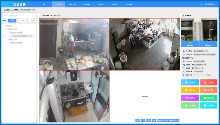 監管部門通過智慧食安可視化平台,實時查看企業後廚實時視頻,並可查看所有的安全信息,包括人員管理安全、食品安全錄入信息、AI預警信息、物聯設備等信息。