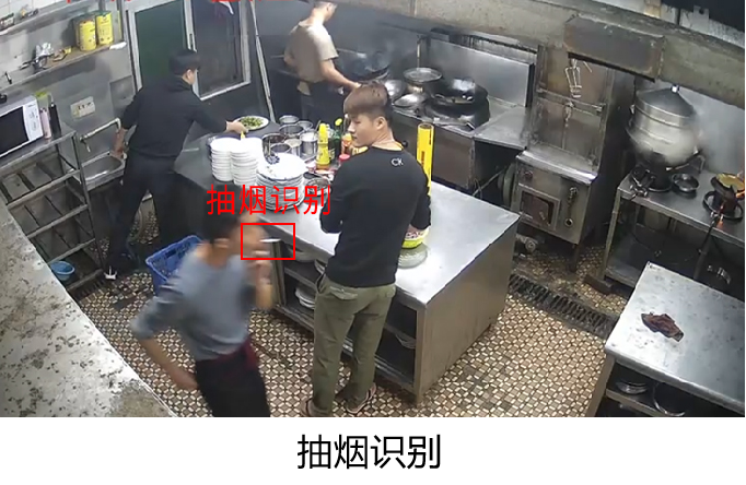 同時使用人工智能分布式計算、大數據、微服務、視頻流等技術,通過雲服務器獲取終端圖片與視頻數據超腦處理後的大數據,具有老鼠、口罩、帽子、煙火、明火、非法闖入、抽煙等智能識別。實現對企業食堂後廚智能化管理,大大增強監管力度,降低人員投入。